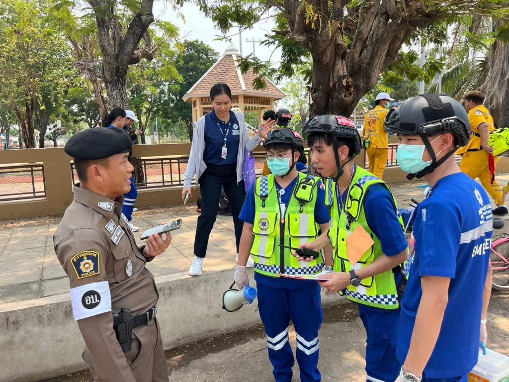 วันนี้(12 เม.ย. 67) เวลา 10.00 น. สภ.เมืองอุบลราชธานี พ.ต.อ.คนองฤทธิ์ ดาราช ผกก.สภ.เมืองอุบลราชธานี มอบหมายให้ พ.ต.ท.ณัฐฐ์ฐนนท์ สีฟ้า รอง ผกก.จร.ฯ พ.ต.ต.ธีรศักดิ์ ไชยพันธ์ สว.จร.ฯ ร.ต.อ.ภาคิน ภูริธาดาวัฒน รอง สว.จร.ฯ ร่วมกับ โรงพยาบาลพริ้นซ์ อุบลราชธานี Princ Hospital Ubonratchathani จัดกิจกรรมซ้อมแผนเผชิญเหตุ การป้องกันและลดอุบัติเหตุทางถนน เทศกาลสงกรานต์ 2567 ณ บริเวณสวนสาธารณะบูรพานอก ถ.บูรพานอก ต.ในเมือง อ.เมืองอุบลราชธานี จ.อุบลราชธานี