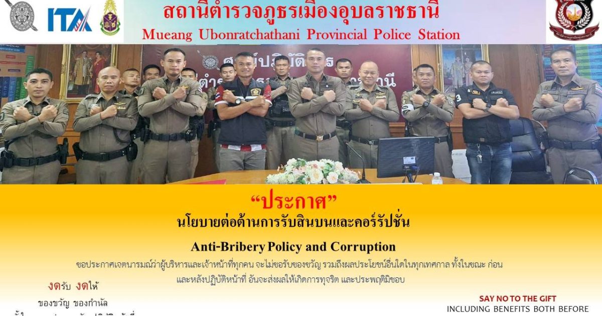 10 กุมภาพันธ์ 2568 เวลา 14.00 น. พ.ต.อ.คนองฤทธิ์ ดาราช ผกก.สภ.เมืองอุบลราชธานี เรียกประชุม พ.ต.ท.ณัฐกร พลภักดี ,พ.ต.ท.ฉลอง อุคะ, พ.ต.ท.พงษ์พิพัฒน์ เหิมฉลาด, พ.ต.ท.ณัฐฐ์นนท์ สีฟ้า แล้วเจ้าหน้าที่ปฏิบัติงาน ITA เพื่อกำชับการปฏิบัติให้เป็นไปตามมาตรฐานการประเมิน และเน้นย้ำนโยบายการต่อต้านการรับสินบน Anti-Bribery Policy ให้หัวหน้างานทุกสายงานกลับไปเน้นย้ำการปฏิบัติกับเจ้าหน้าที่ตำรวจในสังกัด ให้ปฏิบัติหน้าที่ด้วยความซื่อสัตย์ สุจริต ยึดหลักกฎหมายเป็นสำคัญ ห้ามมิให้มีการเรียกรับสินบนจากการปฏิบัติหน้าที่โดยเด็ดขาด