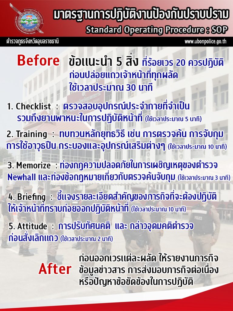 มาตรฐานการปฏิบัติงาน ( Standard Operating Procedure : SOP ) ของเจ้าหน้าที่สายตรวจ